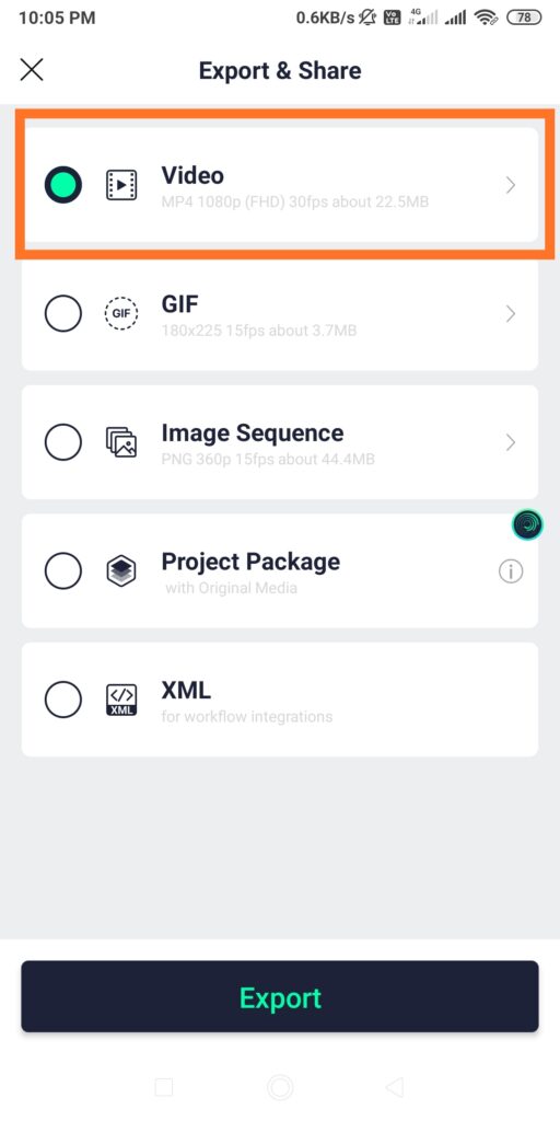वर दिलेल्या सर्व step केल्या नंतर तुमचा विडिओ export करण्यासाठी तयार आहे, तर आता तुम्हाला या विडिओ ला export करून घ्यायचा आहे. विडिओ export करण्यासाठी तुम्हाला वर दिलेल्या share च्या पर्याय वर click करायचं आहे आणि विडिओ export करून घ्यायचा आहे आणि जर तुम्हाला विडिओ बनविण्यात अडचण आली असेल तर तुम्ही मी YouTube ला बनविलेला विडिओ बघु शकता. Video ची link खाली दिलेली आहे